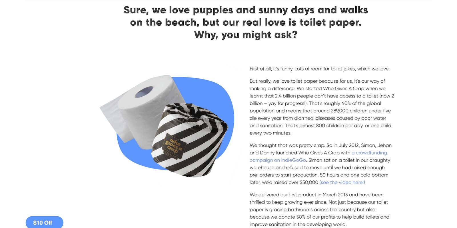 Plus, their above the fold (ATF)—the part of their site that’s visible before you start scrolling—is interactive. Change the number, see how many people you can help.
