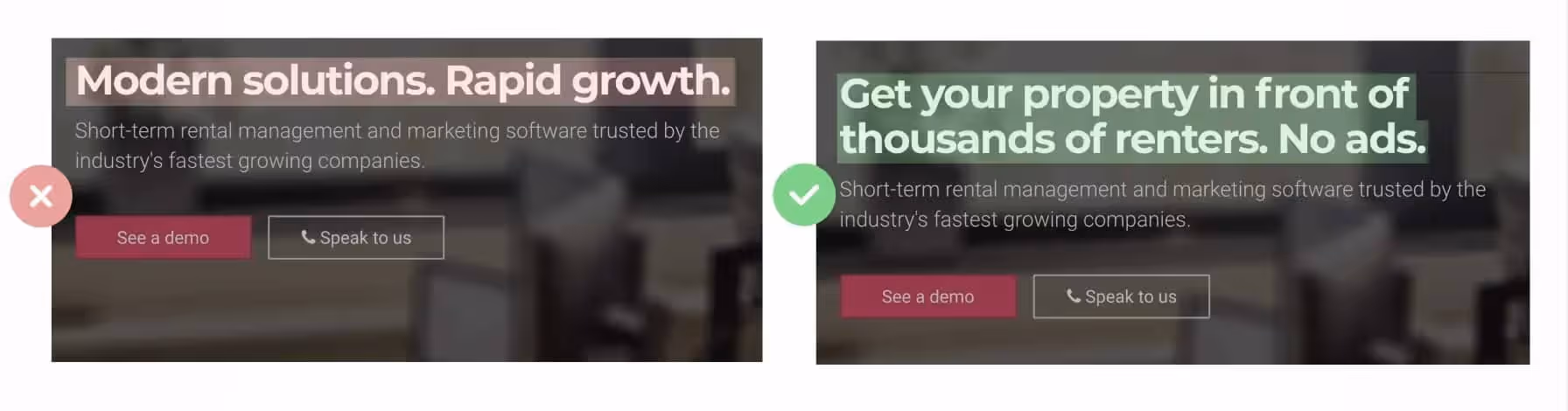 - Ex. “A platform designed for fast-growing startups” → “Scale smarter. Sleep better.”
