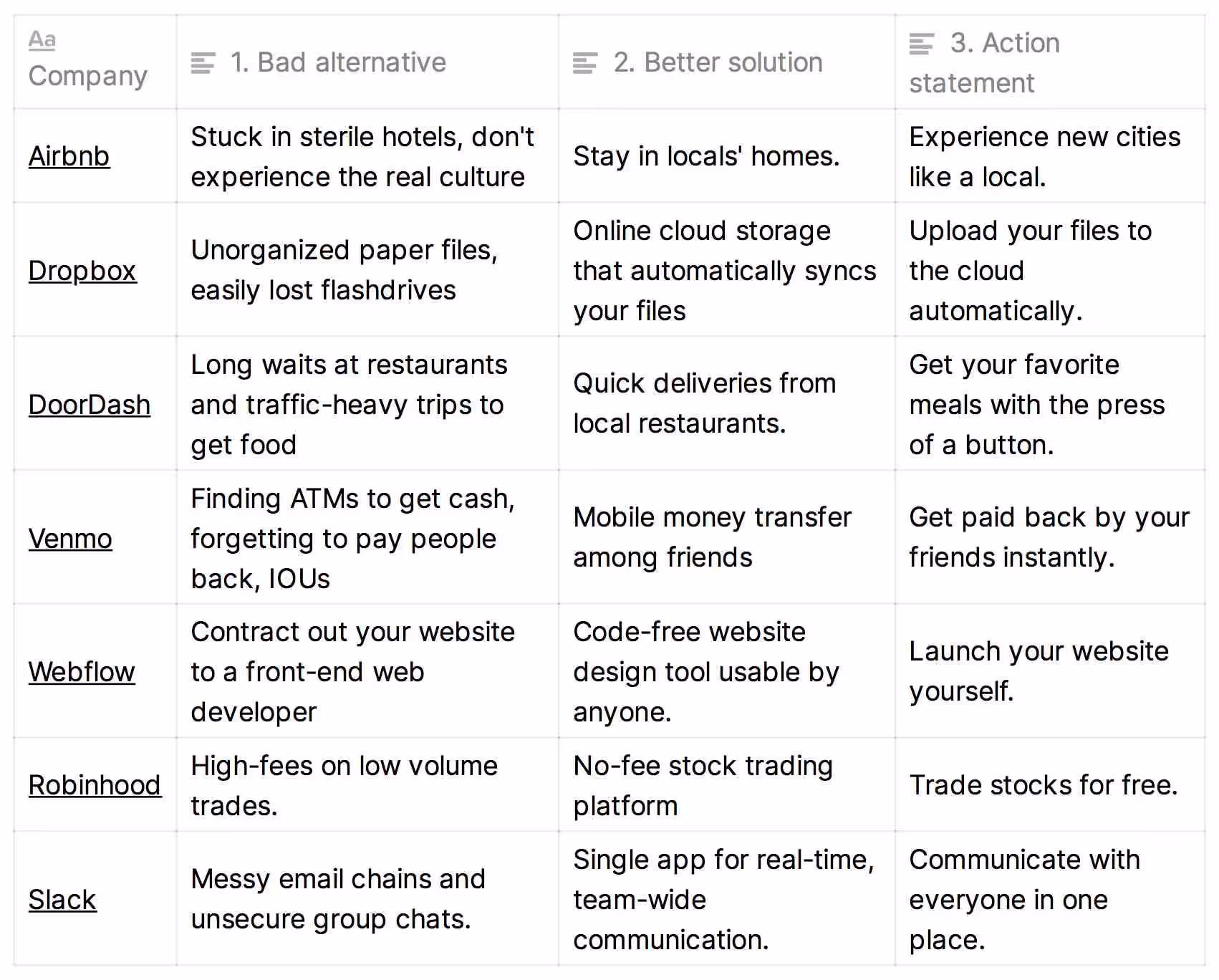 - Bad alternative: What bad alternative do people resort to when they lack your product?