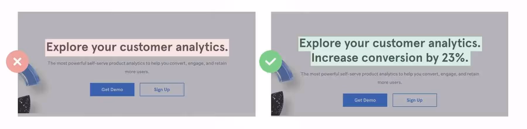 - Your header should use specificity to convey your value and show a customer what they stand to gain, often in an actionable/imperative way.