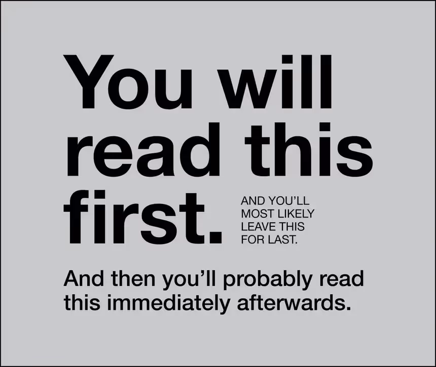 When you look at the above you'll first read the headline. That's because the image, logo, and filler text are all emphasized less.