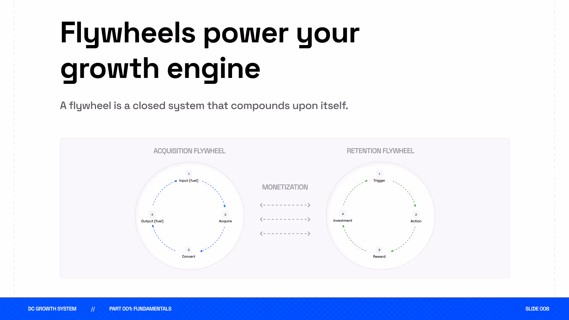 Flywheels are the mechanism that turns your foundation, your catalysts, and your motions into compounding systems. When we say we’re going to help you build a growth engine that is scalable, predictable, and repeatable… flywheels are the core force that makes those outcomes real.