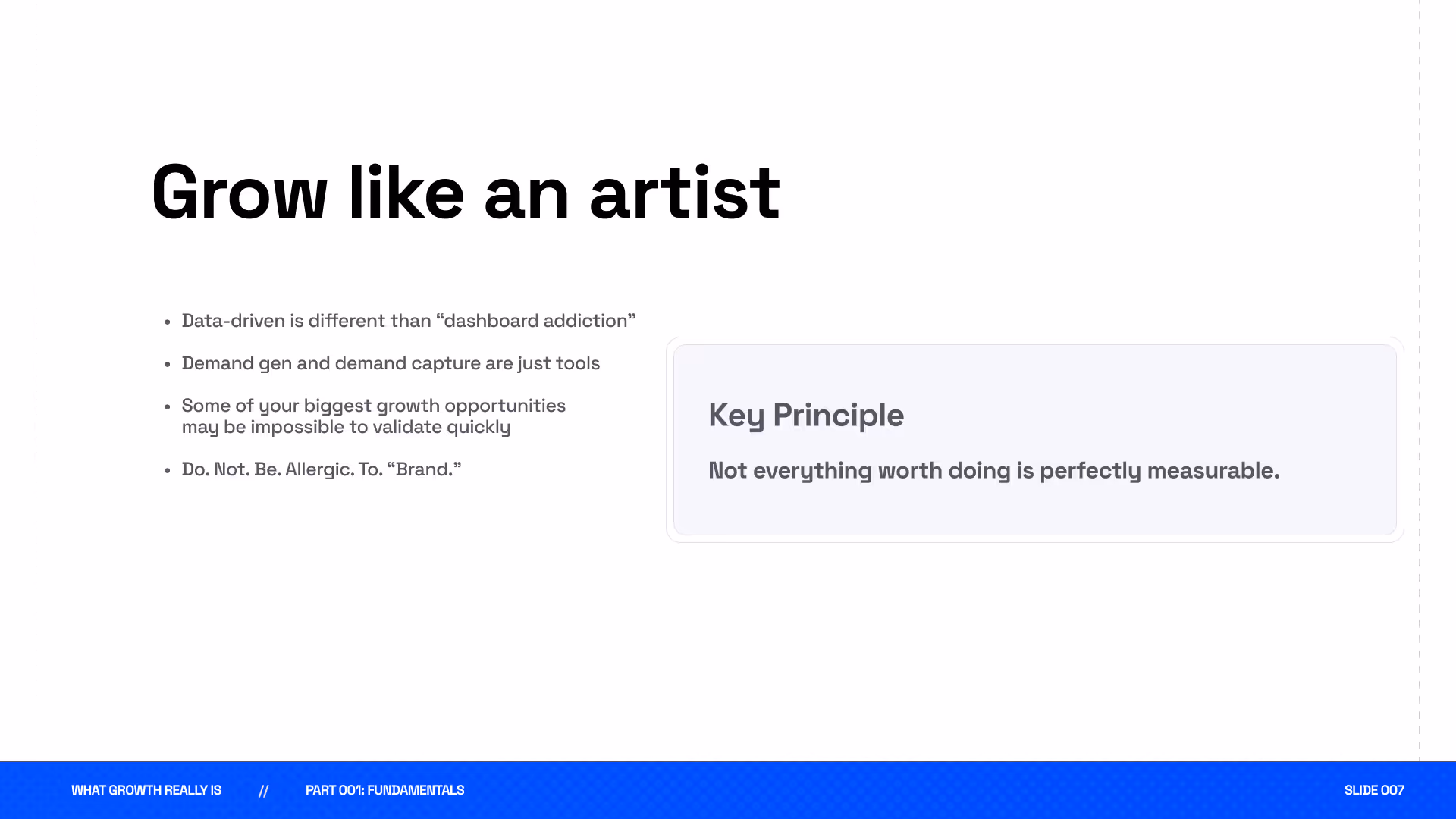 Now that may seem to contradict what we're talking about when we're saying you need to grow like a scientist and conduct thoughtful experiments that must be able to be measured in order to capture our highest leverage learnings. But in this context, what I'm trying to steer you away from is the common misconception that certain growth activities are superior to others.