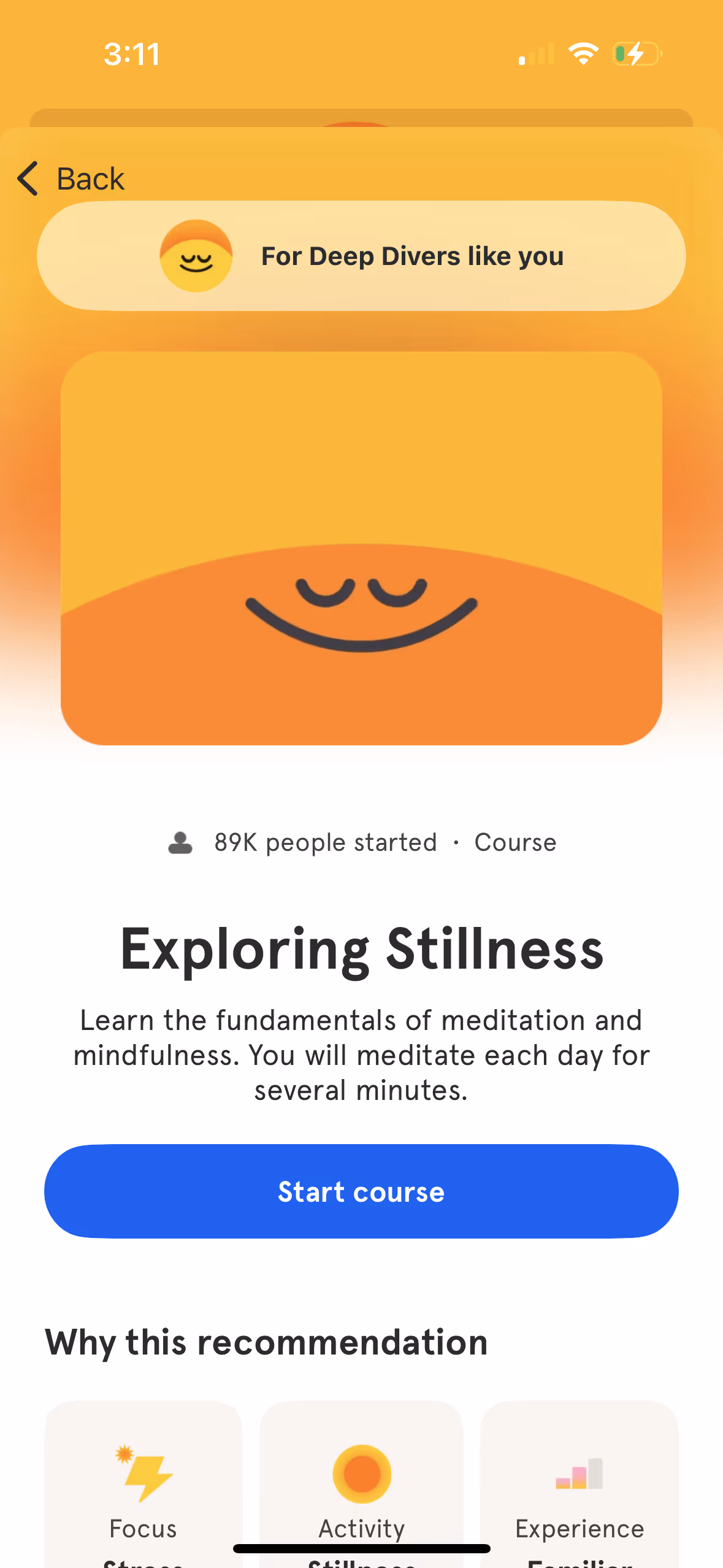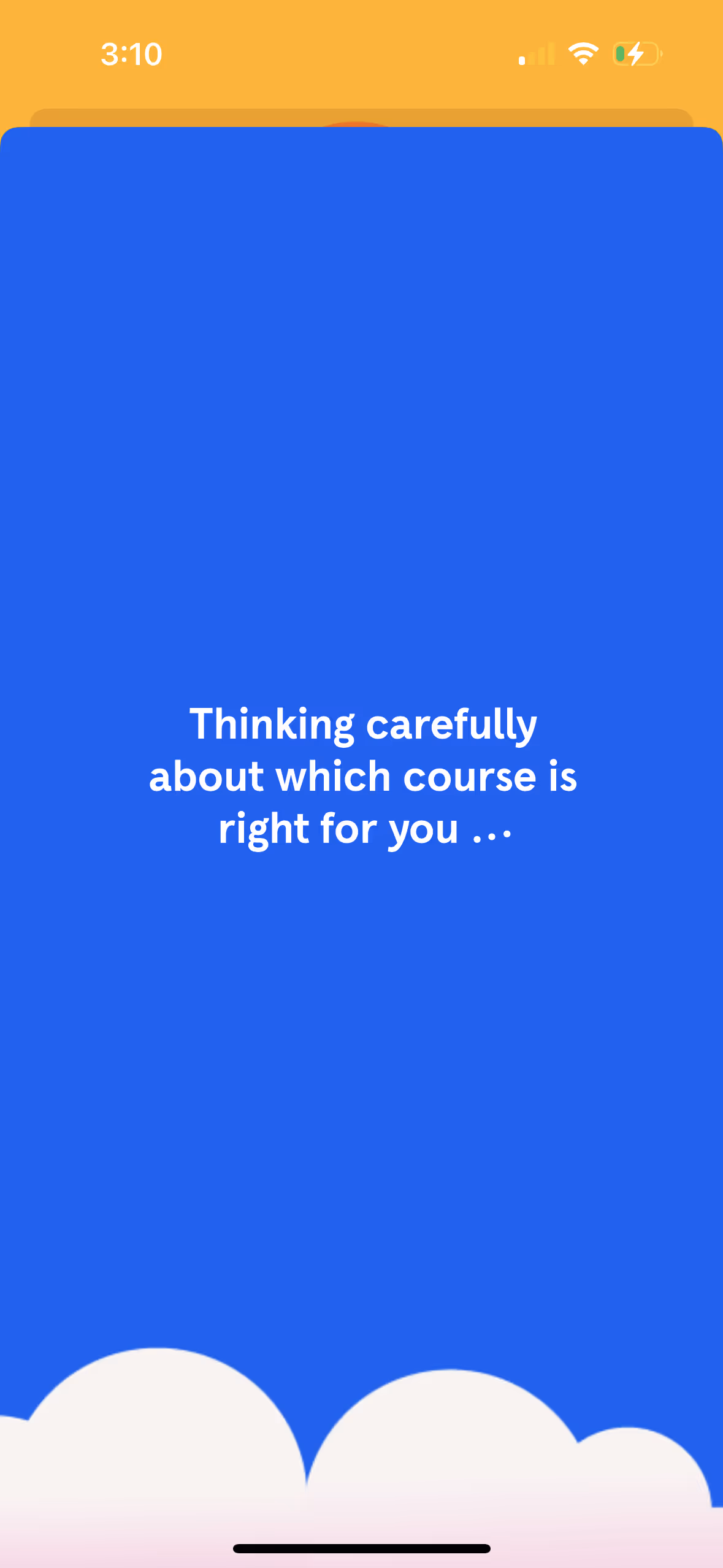 This screen adds a little bit of excitement while also making you feel like you’re a part of the experience by having you tap on the screen. Your active participation makes you more likely to start the course they’re going to recommend.