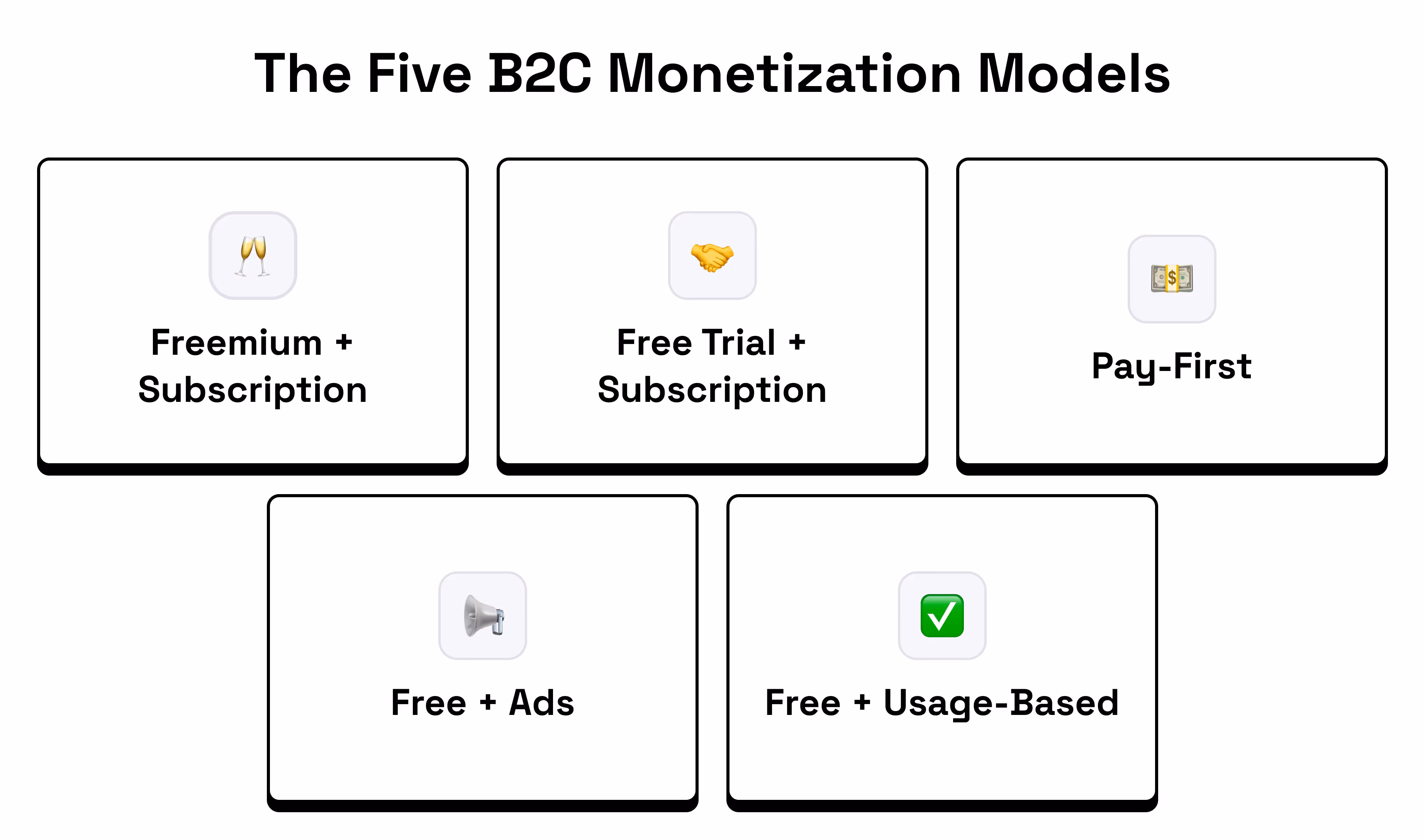 Note: These aren't the only models out there. There are edge cases and hybrid models that combine elements from multiple categories, but these five cover the majority of B2C products.