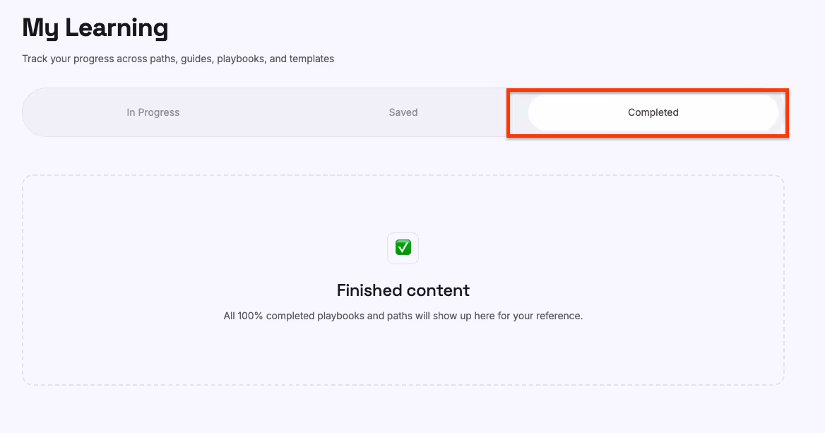 Access your personal library in “My Learning.” Everything you’ve started, saved, or completed lives here so you never lose track of your progress.