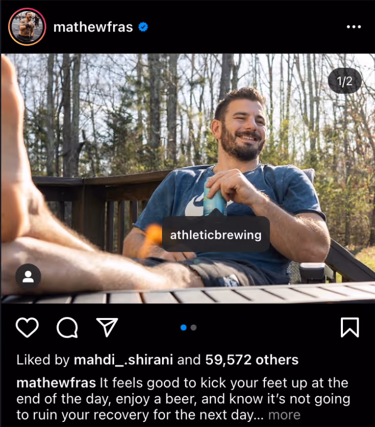 Athletic Brewing, a non-alcoholic beer company, works with sports and outdoor influencers whose Instagram audiences are looking for healthy alternatives to alcoholic beer. They focus on building community and brand awareness.