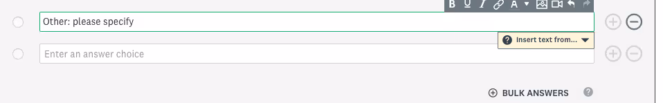 More times than not, you'll want to EDIT your questions. In the case of an "other: Please specify" question, where you need to allow a text box response, here's what to do: