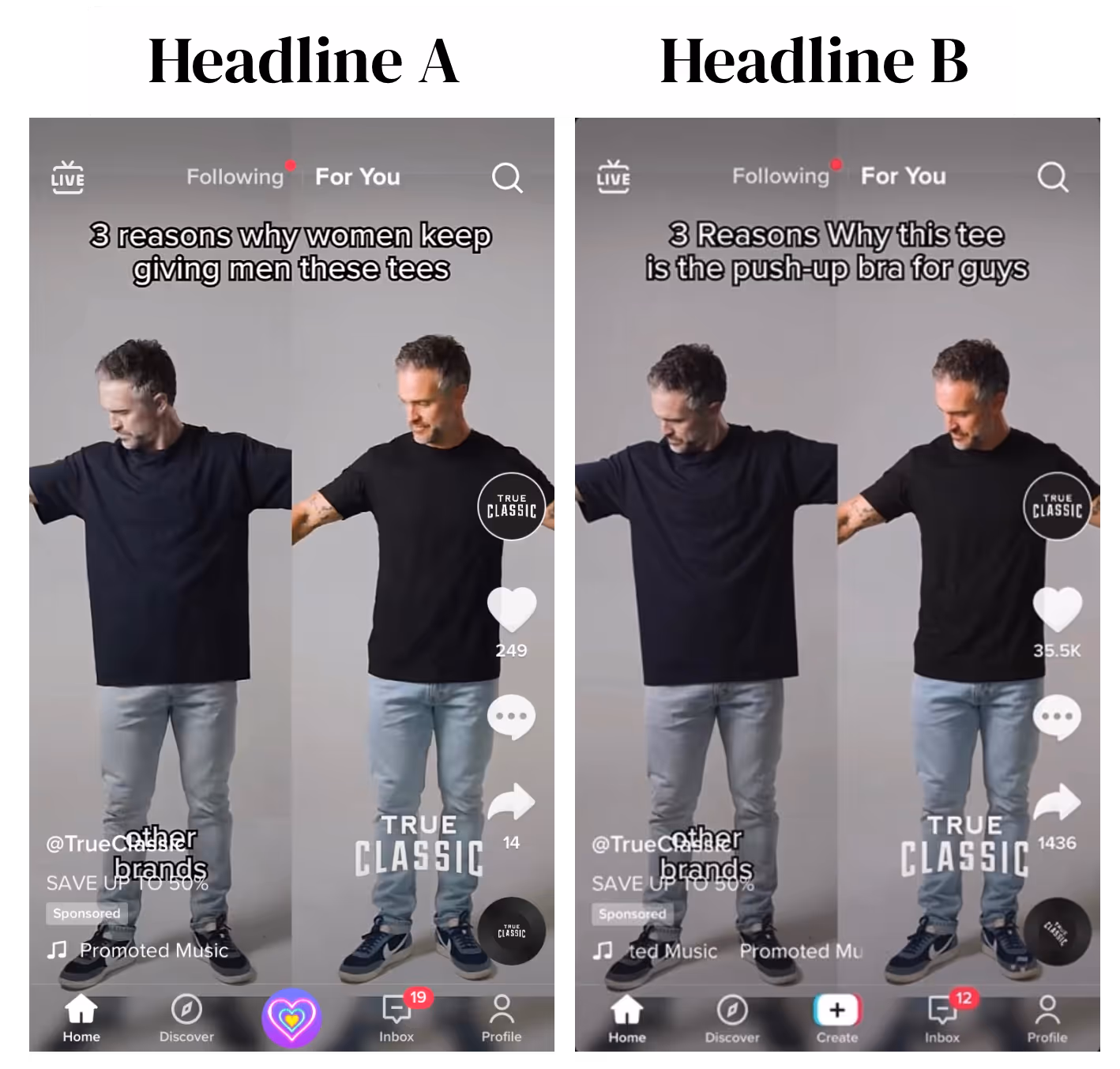 Here's an example of a big swing creative test using two wildly different video openers.