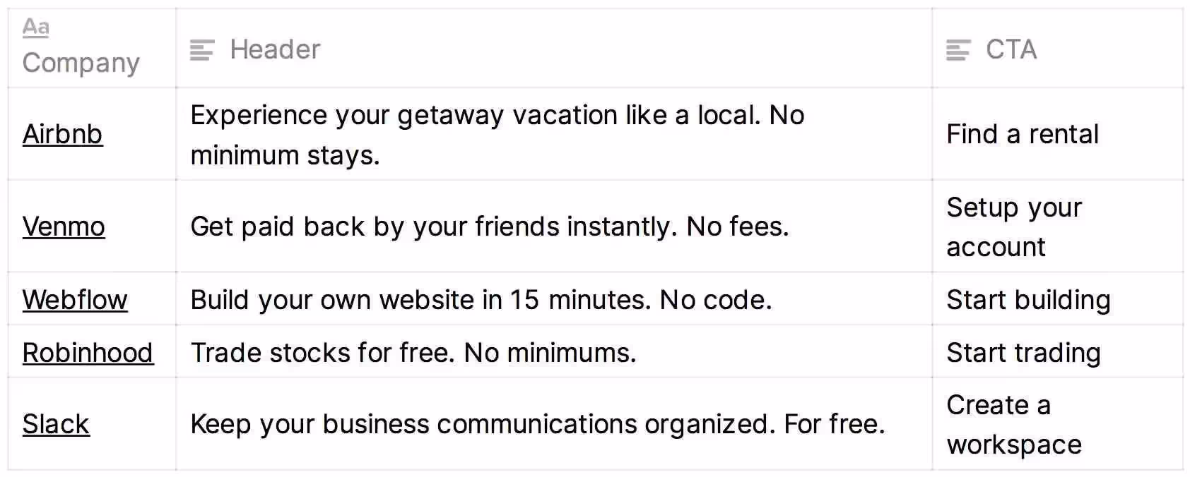 - Your header should use specificity to convey your value and show a customer what they stand to gain, often in an actionable/imperative way.