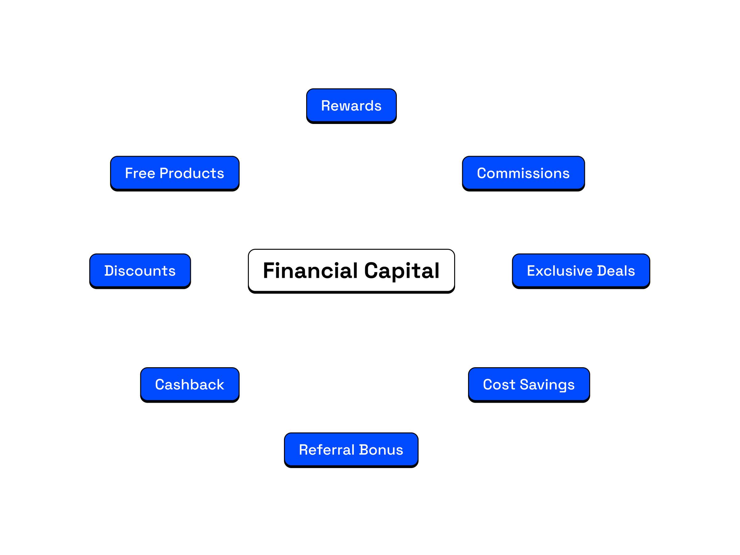 What it is: Financial capital refers to direct economic value (money, free products, discounts, or anything that improves someone’s financial position). Here, people share when they can gain something financially or help others do the same.