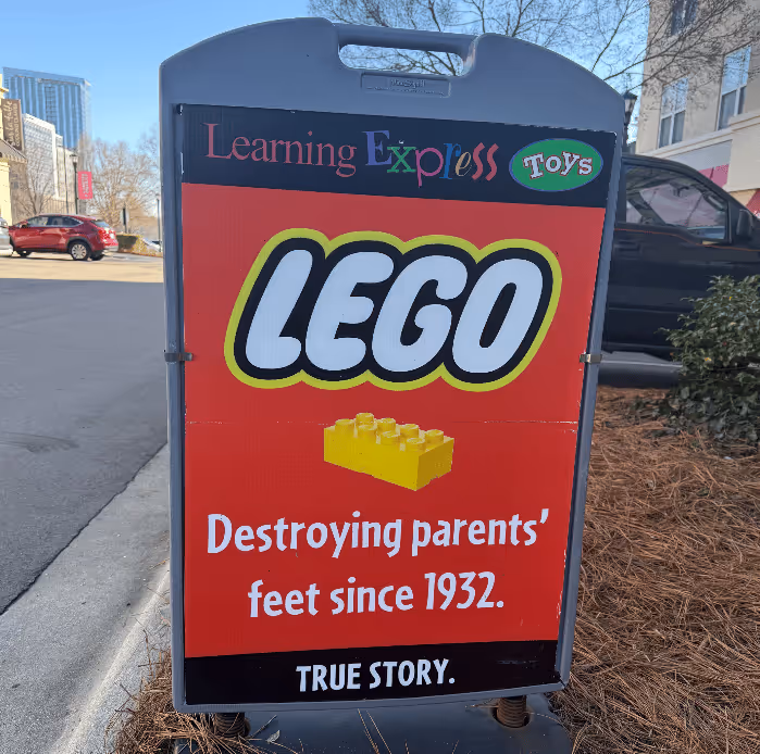 Taken at face value, the sign outside this toy store is counterintuitive. “Hey parents, spend money on this product to destroy your feet.” Pleasant, right?